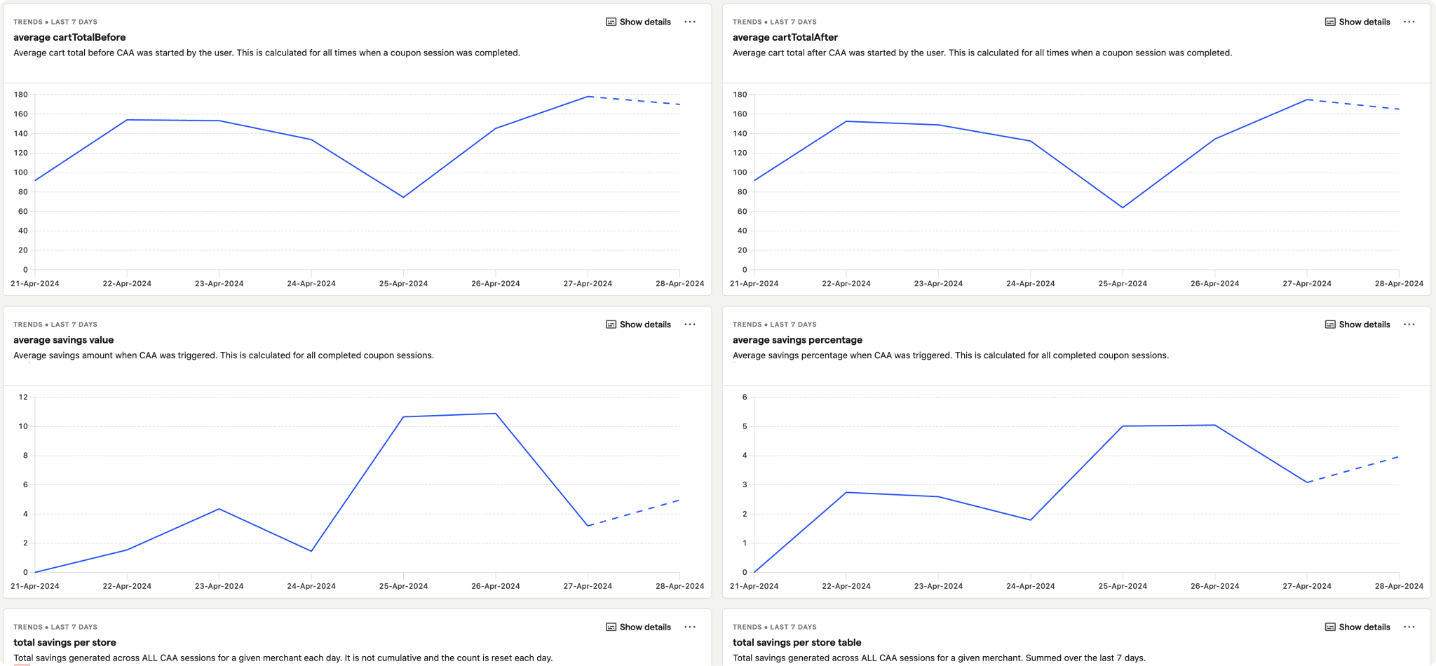 Sleek works with your existing dashboarding tools to provide insights into coupon performance and usage of coupon auto-apply.