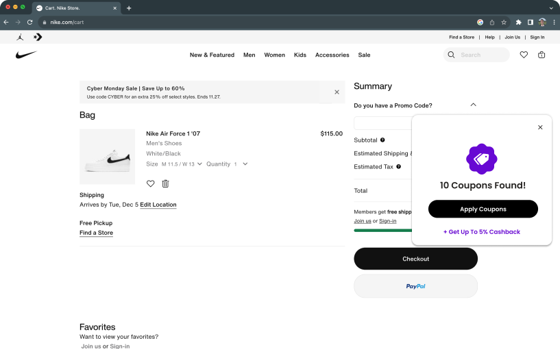 Sleek will detect when the user is on a page where coupon can be applied. Then, Sleek will provide custom white-label UI to allow the user to apply the coupon directly on the page.