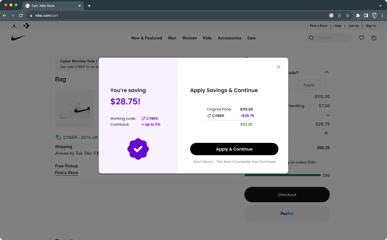 Sleek will detect the savings that the user has received from the coupon and surfaces custom white-label UI to show the savings to the user.