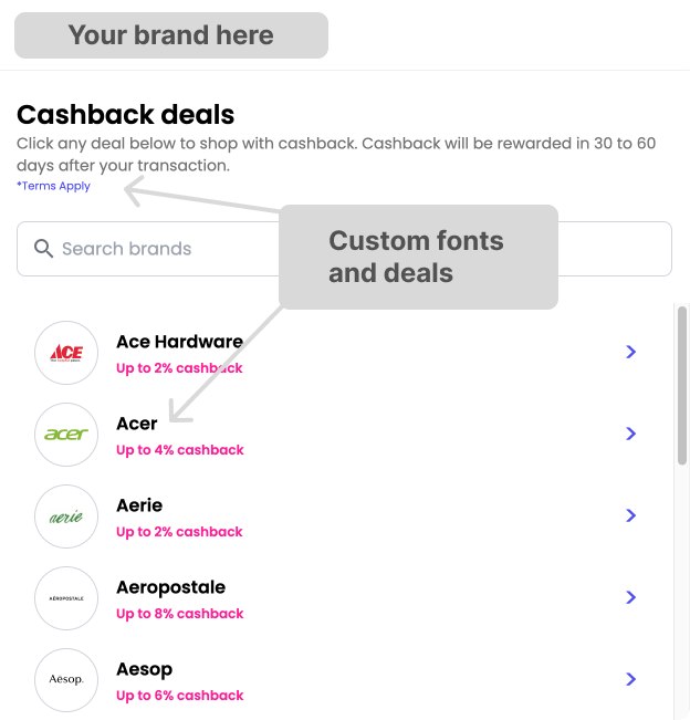 Sleek custom webpages support the following feature sets: 💰 Cashback and deals Users can earn cashback and rewards on their purchases when they shop through your custom deal portal webpage.